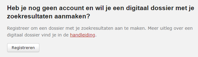 Let op: om een dossier te kunnen aanmaken, moet u zich eerst registreren op de homepage.