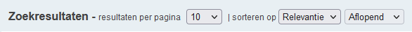 Als uw zoekopdracht resultaten oplevert, verschijnt een pagina met zoekresultaten. Standaard ziet u maximaal 10 zoekresultaten. Dit aantal kan worden aangepast: 5, 10, 20, 50 of 100.