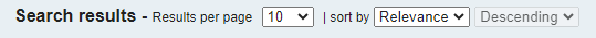 If your search returns results, a page of search results will appear. By default, you will see up to 10 search results. This number can be adjusted: 5, 10, 20, 50 or 100.